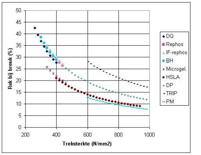 Als constructiestaal wordt veel gebruik gemaakt van staalkwaliteiten als S235JR en S355J2. Daarnaast is er een grote groep van staalsoorten met een sterkte. Deze hogere sterkte kan op diverse manieren worden gerealiseerd zoals door koudwalsen of door microlegeren. In onderstaande figuur (bron Tech-Info-Blad Ti.04.18) zijn een aantal verschillende hoge sterkte staalsoorten weergegeven.